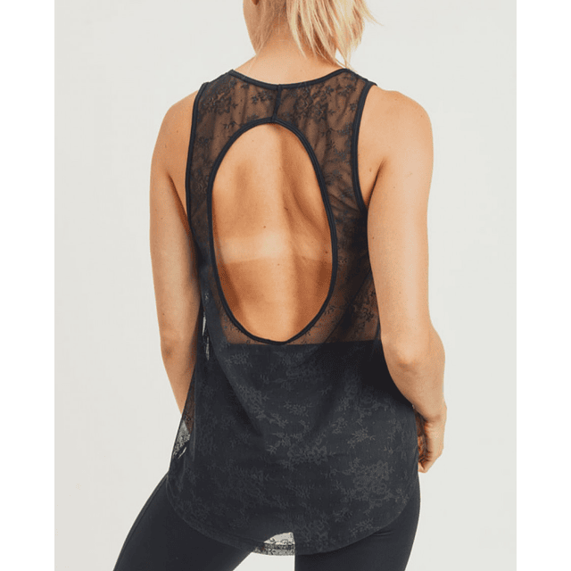 Polera Negra, cuello redondo, de lycra, espalda rebajada de encaje.