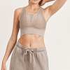 Top café claro, almohadillas removibles, 92% nylon 8 % spandex.