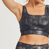 Top deportivo Animal Print, negro con dorado. Almohadillas removibles.